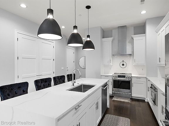 Experience modern upscale living at The Washington in the heart of downtown Royal Oak. This 1-bedroom, 1-bath residence is truly one of a kind and best appreciated in person. Step inside to an inviting open floor plan designed for entertaining, featuring 10-foot ceilings, 8-foot doors, and a sleek, contemporary style with abundant natural light. The gourmet kitchen is a standout with custom Lafata cabinetry, quartz countertops, a waterfall island with stainless-steel sink and disposal, stainless appliances, a built-in drawer microwave, and a GE Café refrigerator. The spacious bedroom offers a thoughtfully designed walk-in closet. Building amenities include a fitness center, elevator, stylish secured lobby with intercom access, private covered parking with an assigned space, and a secured storage unit. Perfectly located near major freeways and just steps from Royal Oak’s vibrant nightlife, dining, shopping and entertainment, this residence blends convenience with sophistication.