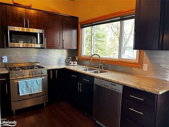 MOTIVATED SELLER. Ready, Set, GO COTTAGE! This is why you buy a cottage! Rippled sand beach, child-friendly property, sun, sun, sun, and a water sports enthusiast ‘paradise with 2 lakes of boating pleasure. The lakeview is spectacular as is the waterfront. This 4-Season site has all the creature comforts – updated kitchen w/granite counters, SS Appliances, Steam showers, Jacuzzi, Wraparound deck with hot tub, cathedral ceilings, hardwood floors, wood fireplace, 4 Bedrooms, 2 Baths, (steam showers, 2-Person jacuzzi), Master Bedroom suite features spacious sitting area with gorgeous lake view & private 5 Pc. Ensuite, main floor laundry, new propane furnace & A/C in 2017 drilled well & septic. All the work has been completed - windows, heating, electrical, plumbing, upgraded insulation, interior - pine ceilings, walls, floors and siding. Just bring the groceries, the vino and let the sandcastle building fun begin! Expect company, friends & family will love it as much as you do. Great proximity to Haliburton Village (-15 minutes). An amazing property offers an amazing lifestyle.