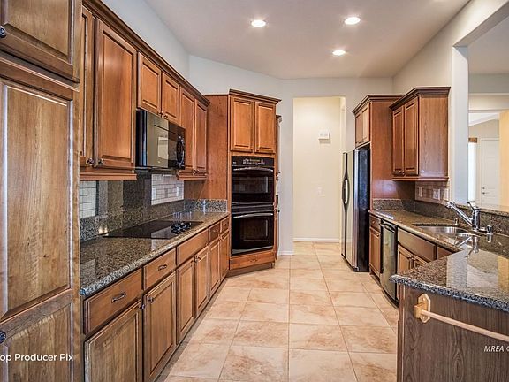 Marigold Floor Plan with VIEW! 2 Bedrooms with Den, 2 Bathrooms with Large 2 Car Garage (483sq.ft). Rock Turret-Style Entry and Mature Landscape welcome you Home. Once inside the Great Room has an open feel due to the raised ceilings. Kitchen has Granite Counter-topos and Cherry Cabinets with pull-outs. Enjoy the built-in Double Wall Oven, Electric Cooktop Range, and Stainless Steel Refrigerator. Reverse Osmosis Filter System already installed. Tray Ceilings in Dining Room and Master Bedroom. Ceiling Fans through-out the home. Large Master Bedroom Walk-in Closet. Master Bathroom has Dual Vanity with Garden Tub and Shower. Second Bedroom can be used as a 2nd Suite as it has access to Main Bathroom. Double Door Entry to the Den. Additional Cherry Cabinets are installed in Utility Room above Washer and Dryer. Water Softner Installed in Garage. Backyard has Covered Patio with extended Brick Pavers. GREAT VIEW OF FLAT TOP MESA AND MOUNTAINS. Enjoy the view while enjoying your Waterfall and Pond. Home also has Solar Screens installed. Sun City Mesquite by Del Webb is a 55+ Community and Residents have access to Pioneer Center (Clubhouse) with Pools, Exercise Equipment, Clubs and More.