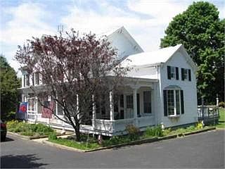 This 1875 Victorian has been immaculately maintained by the same owners for over 40 years.Home has a 1st fl. master, fdr,9ft ceilings, original woodcraft,wideplank floors,screerned porch, rocking chair porch and 2 decks overlooking 12 acs w/trout stream. The 2 story,4 car garage has a loft w/ plans for apt conversion. perfect for a B+B, antique business or gentleman's farm!