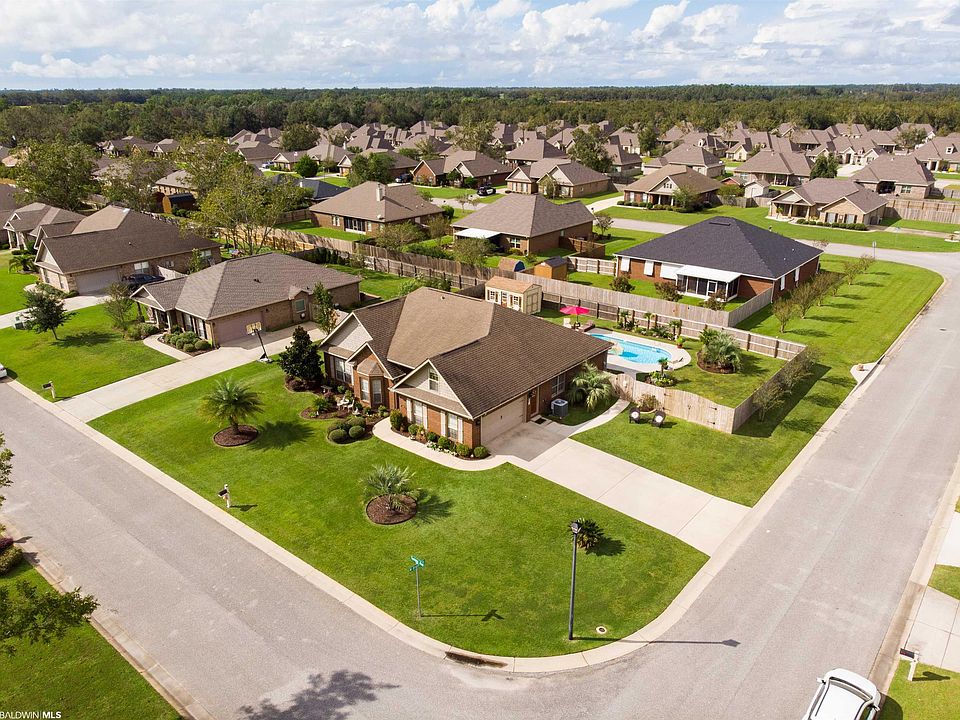 Get ready to move into this beautiful 3 Bedroom ,2 Bathroom home with a bonus room and a saltwater swimming pool located on a corner lot in the desirable Pebble Creek Subdivision. This home features vaulted ceilings, crown molding, wood floors, granite countertops in the kitchen and bathrooms .The large bonus room can be used for an office or an extra bedroom. The backyard is definitely arranged for entertaining with a saltwater pool that is surrounded by palm trees/with lighting and a variety of matured landscaping The covered patio is wired for a big screen tv for game day sports. The Graceland shed is equipped with its own breaker box and wired for cable. Irrigation system in the front and back. Privacy fence with a large gate entrance for a boat ,RV, etc. HVAC is 1 year old and home warranty provided by Seller This home is conveniently located close to restaurants ,shopping. entertainment and beaches10 miles to Gulf Shores Beaches10 miles to Wharf/Orange Beach4 miles to OWA