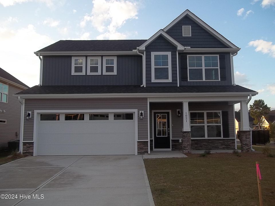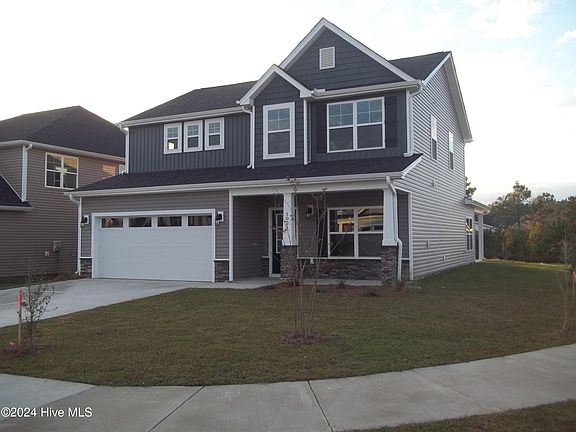 Bailey floor plan built by Windsor Homes in The Terraces. Covered front and back porches and stone wainscoting on the exterior Additional 10 by 12 patio out back that includes an additional gas line. . Interior features 4 bedrooms and loft that includes with the primary bedroom downstairs, and 2 1/2 baths. Coffered ceiling in the dining room and a Tray ceiling in the master. LVP throughout the downstairs main living areas and tile in the wet areas , along with quartz countertops in the bathrooms. Kitchen to include a large center island, with granite counters, staggered height cabinets, subway tile backsplash, and stainless steel whirlpool appliance package. Gas fireplace in the living room and tankless gas water heater located in the garage. The Terraces is a natural gas community and also includes a community pool. Located within about a 10 minute drive of Topsail Island and about halfway between Wilmington and Jacksonville. Highly sought after Pender County School District.