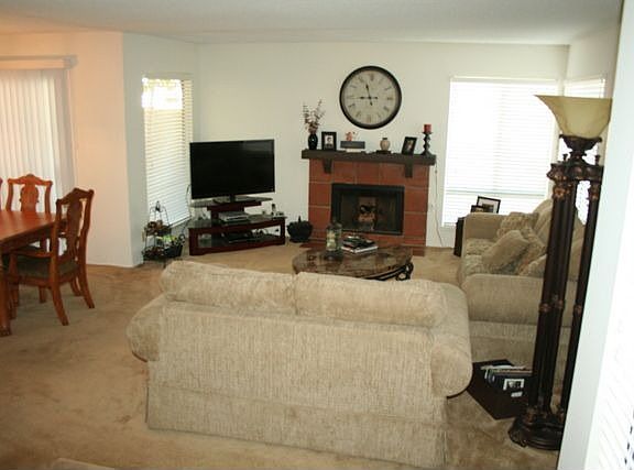 Great location fresh paint throughout, all new flooring and freshly scraped ceilings with central AC, 2 car attached garage, large deck and patio, eat in kitchen, fireplace, high ceilings in the master bedroom. All bedrooms are upstairs. Stainless steel range and microwave. Community pool & spa. Near parks, shopping and award winning schools shows great! Refrigerator, washer and dryer not included. Submit on pets.