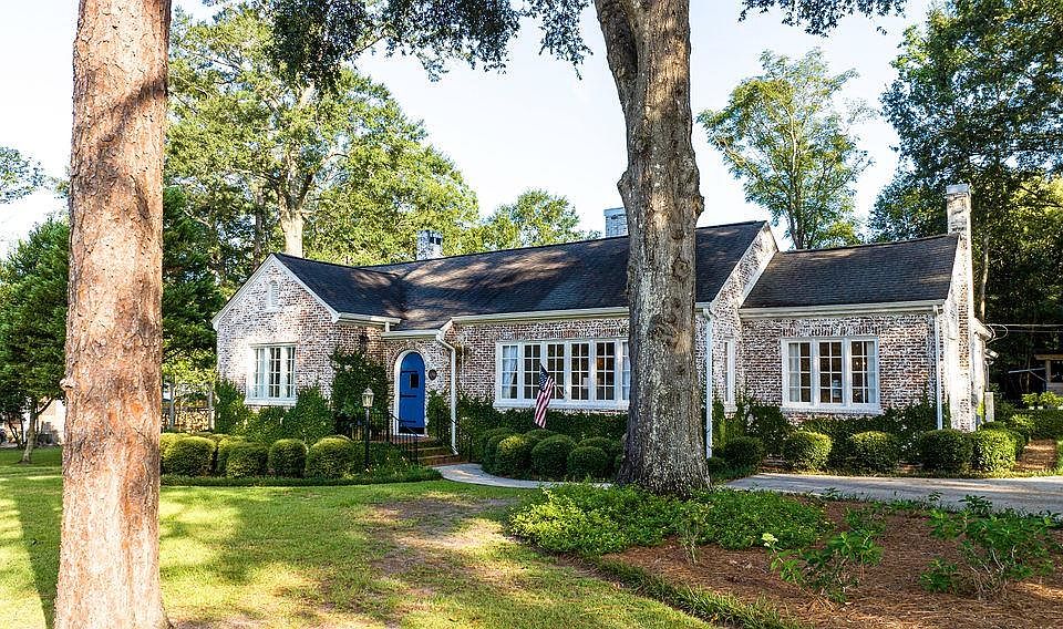 STUNNING and absolutely breathtaking home in one of Andalusia’s most desirable areas. The entire house glows with natural lighting from the multitude of windows. The living room boasts cathedral ceilings, built-ins, and a brick fireplace. Continue through to the right wing of the home where the arched doorway welcomes you into the formal dinning through which you reach the the kitchen that boasts new appliances with granite counters and a custom island made from wood from when the house was originally built. Coffered ceilings can be found in the sitting room off the kitchen that has scenic views of the courtyard and cottage. Stroll down the light-filled corridor to the left wing where the bedrooms are located and step into the primary suite with cathedral ceilings and French doors to the beautiful courtyard. Step outside to find an outdoor cooking area and separate dwelling cottage. The cottage itself has a living room, kitchen, 2 bedrooms, and a full bath.
