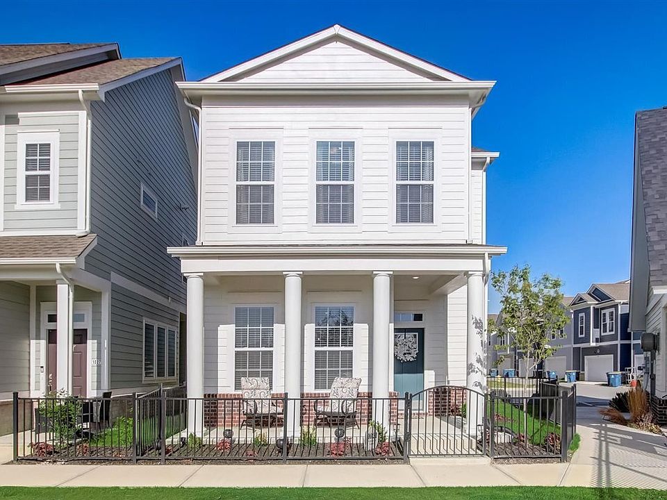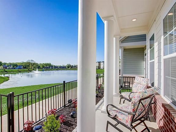 Beautiful waterfront home in Carmels popular Grammercy neighborhood. Georgian style covered front porch is perfect for relaxing overlooking pond. Conveniently located next to the pool, feel like you have your own in ground pool w/o the maintenance! Meticulously landscaped w/adorable wrought iron fence & garden gate. Open concept main level w/high ceilings & tons of natural light. Kitchen w/gas stove, stainless appls, quartz counters & tons of cabinets. Half bath on main, upstairs hosts owners ste w/water view, W/I closet, owners bath w/dble sinks, tile shower & water closet. Split flr plan w/second & third bdrm at other end for ample privacy. Full bath w/dble sinks & tub. Spacious 2 car garage. Located near everything Carmel has to offer!