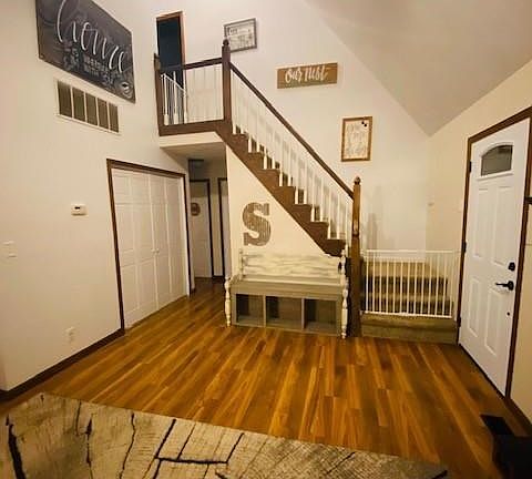 Check out this 3 Bed/2 full Bath Home located on the outer edge of Brazil. Almost an acre of ground, you'll notice the nice landscaped yard with mature trees. This home is cute as a button and has been well cared for. Once inside you will notice the open concept with soaring ceilings. There is a wood burning insert to keep you cozy in the winter, 2 Beds on the main floor with shared bathroom. Upstairs there is a full bathroom with shower, nice size bedroom with walk out rooftop area. The kitchen has plenty of cabinets and counter space to cook up the perfect dinner. Out back there is a large deck for entertaining and fully fenced yard.