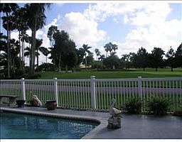 Home with the "MILLION DOLLAR VIEW"! POOL, GOLF & WATER VIEW. Beautifully landscaped & fenced plus(builder constructed)privacy wall. Stamped borders surrounding landscaping front & back. Kit. w/numerous cab, over extended counter for breakfast bar, sliding drs. to pool. Separate Screened Patio Area. Neutral tile throughout, crown molding, custom window treatments' master w/sliding doors to magnificent view. Master bath w/special Bain Air Tub, triple glass wall cab w/inside electricity. ACCORDION H