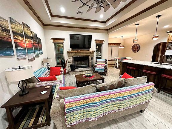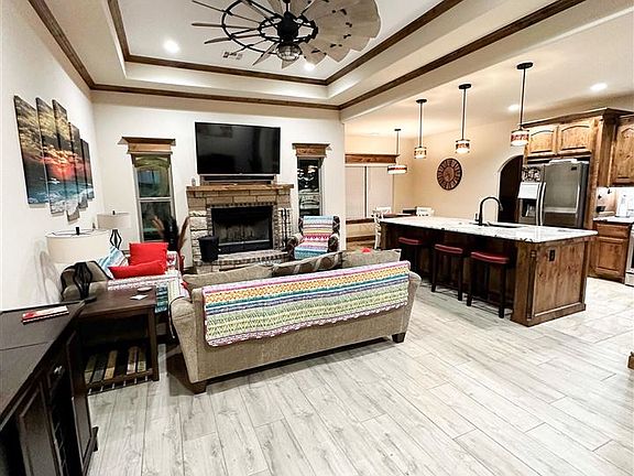 Custom built home on 3 acres in Cache Woodlands Addition! Secluded location with beautiful trees and circle drive. Home includes 3 bedrooms plus an office. Spacious great room with fireplace, wood-look plank style ceramic tile and soaring ceilings. Gourmet kitchen with huge island, gas range, stainless appliances and separate dining. Primary suite with two walk in closets, dual vanity, walk in shower and sauna. So many other amenities including a Generac generator, RV Parking area, separate 3rd garage is heated and cooled for workshop space and covered patio. Call today for a private showing! 580-248-8817