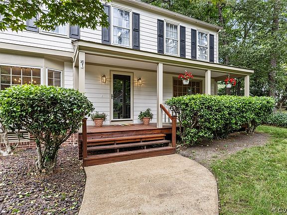 Welcome home! In the Covered Bridge section of the popular Crown Grant neighborhood, this traditional and charming colonial home has been lovingly cared for by its original owners and is ready for a new chapter! With 4 bedrooms and 2.5 bathrooms across almost 1900 sq ft, this home has all the space you will need in a fantastic and convenient location. Upon arrival, you'll be greeted by a welcoming covered front porch, setting the tone for the inviting atmosphere within. Step inside to discover a well-appointed interior featuring gorgeous hardwood floors, fresh neutral paint, and tasteful finishes throughout. The main level has a flexible layout which includes an eat in kitchen and spacious dining room adorned with chair and crown moldings, perfect for hosting special occasions. There are also two living spaces including a den which is anchored by a cozy fireplace and seamlessly flows into the rear screened porch, offering serene views of the beautiful park-like backyard, which has plenty of space to play or entertain, enjoy a fire pit, use one of the two workshops, or garden. Upstairs, all four bedrooms, including the primary suite, await, providing a peaceful retreat for every member of the household. Additionally, a convenient walk-up attic offers all the storage space you could need. Situated in a highly sought-after area, this home is zoned for top-rated schools and offers proximity to Short Pump's vibrant shopping, dining, and entertainment options. Additionally, you will have easy access to interstates 64, 295, and 288. Crown Grant is renowned for its active community and walkable streets, making it an ideal setting for those seeking both convenience and connection. Don't miss out on the opportunity to call this charming home your own! Schedule your showing today! Don’t forget to check out the video and 3-D tour.
