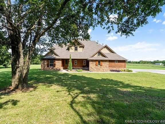 Rare opportunity to own acreage & a stunning home! 16.67 acres with a 2009 built home, with 3 beds + office (or 4 beds), Game Room, & an exceptional backyard featuring a huge covered patio with an OUTDOOR KITCHEN, heated GUNITE POOL & SPA, built-in speakers for music throughout & partially fenced yard boasting 3 PONDS! Not only is the property fantastic, with trails mowed & opportunity for 10 bales of hay +/-, AND the interior is nicely updated featuring Granite island & bartop, PORCELAIN TILED FLOORING, primary suite with Whirlpool tub & dbl sinks, Stainless Steel appliances featuring a built-in microwave & tiled backsplash with a pot filler. Don't miss out on this opportunity! Sell off some of the land, or keep it all for yourself! Owasso schools (seller reports it could also be Collinsville schools)