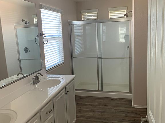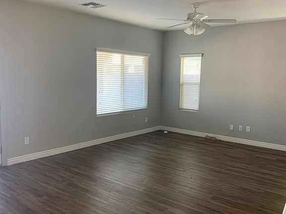 Welcome home to this stunning home in Eastmark, one of the most desired new communities. The open family room and kitchen are an entertainer's dream and gathering place, boasting staggered cabinets w/ crown molding, stainless steel appliances, a pantry, and breakfast bar. Upstairs, the loft makes a great media or play room. The tranquil master suite offers large bath w/ dual sinks, shower and customized walk-in closet. Additional bedrooms are generously sized and offer plenty of natural lighting. Relax on the covered patio or by the fire pit in the spacious backyard. Additional features include ceiling fans and shutters throughout, two tone paint, French doors added to family room, speakers, storage under the stairs, and more. Eastmark community benefits include