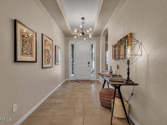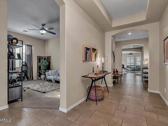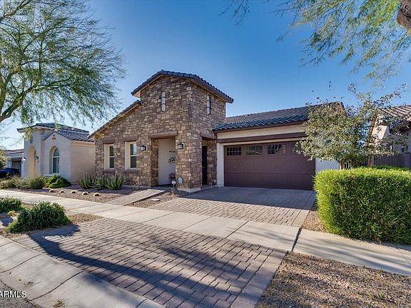 Gorgeous home located in the Eastmark community. This stunning home features three bedrooms (split master) a den, two-and-a-half baths, oversized three car garage & gorgeous backyard with pool and spa. Kitchen features upgraded cabinets, quartz countertops, beautiful white backsplash, upgraded professional stove, double ovens. Open and bright floor plan with all the right finishes. Tile flooring in all the right spots. Laundry room has built cabinets and pass through to master closet. The master en suite includes large custom tile walk in shower