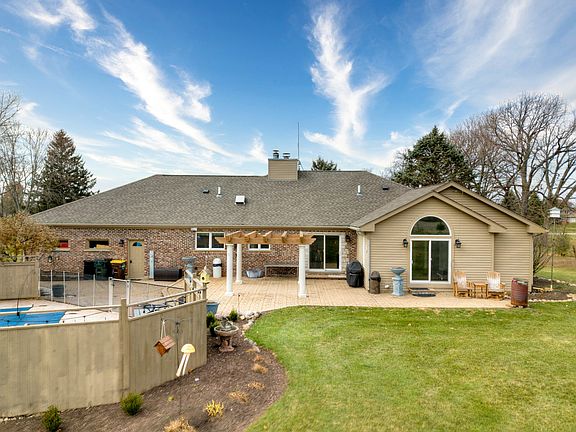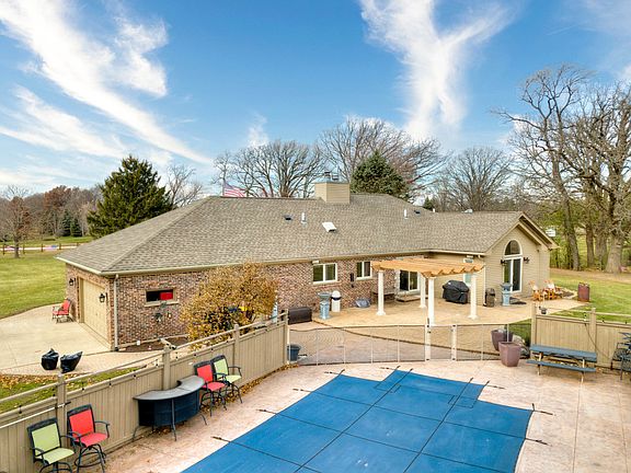 Updated ranch on a 10+ Acre Gentleman's Farm with nearly 4000 SF of living space. Stone columns with carriage lights welcome you to this serene oasis surrounded by a new oak 4-rail fence. An entertainer's dream, the grounds feature beautiful landscaping w/a fire pit, a 16'x32' in-ground pool with a large paver patio, sun pavilion, new swing set/clubhouse, and an outdoor patio wired for speakers. Store all your toys, farm equipment or RV in the fully insulated and heated 50'x30' pole building w/14'4 door & 16' to the rafters, complete with 200-amp electrical service (renovated 2019). The building will easily park 6 cars for the hobbyist or car aficionado. Inside, the bright open concept layout features a massive great room with a custom built-in bookcase and vaulted ceiling wired for surround sound. Chef's kitchen with granite counters, tiled backsplash, and Viking Pro appliances; new oven, microwave, and refrigerator (2019). Reverse osmosis system for coffee maker/ice maker and drinking water. Hardwood floors throughout the dining room, great room, and master bedroom. Luxury master suite w/vaulted ceiling, huge master bath w/oversized tiled shower, dual vanities, a jacuzzi-style tub and walk-in shower. White plantation faux wood shutters in all bedrooms and master bath. Bright laundry room with a view to the backyard features a new washer/dryer, cabinets, and folding counter (2020). The Pinterest-worthy 1650 SF lower level was fully remodeled in 2021. Comfortable living room/tv room w/fireplace, a private office space, playroom with a built-in desk suitable for home schooling, an exercise room, and plenty of storage. New whole house filtration system and water softener (2019). New well pressure tank (2018). Wired for 50-amp rated portable backup generator with back-feed prevention. Award-winning Richmond schools! Close to quaint downtown restaurants and shops, and only a 15-minute drive to Lake Geneva. The current owners have lovingly improved this home to make it the perfect place to build memories with your family.