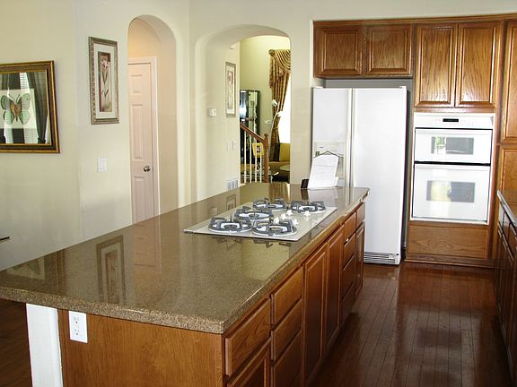 Great neighborhood with easy access to shopping and schools. Home has hardwood floors and granite kitchen counters. Huge master suite with fireplace large bathroom, dressing area and walk in closet. Upstairs laundry room. Covered patio with built in grill.