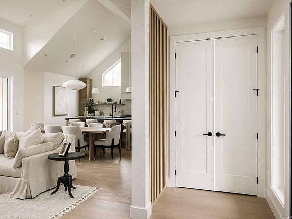Stunning 4-bed, 3-bath rancher situated on a scenic 0.25-acre lot with exceptional sun exposure in the desirable Pat Bay neighbourhood. This immaculate single-level home offers a spacious open-concept layout with the finest finishes. The modern Cape Cod design is complemented by large windows,16ft vaulted ceilings, and wide-plank hardwood floors throughout. The gourmet kitchen features shaker cabinetry, soft-close doors, premium appliances, quartz countertops, an oversized island, and a walk-in pantry. Retreat to the luxurious master suite with a 5-piece ensuite and walk-in closet. Outside, enjoy an expansive west facing patio space, ideal for entertaining or relaxing in the tranquil surroundings. Additional conveniences include an oversized double-car garage, radiant in-floor heating, a heat pump with A/C, and a partially covered rear patio to further enhance the appeal. Built without compromise.
