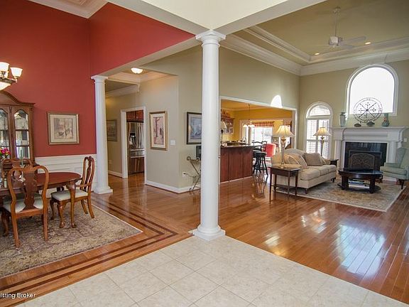 CUSTOM BUILT RANCH WITH PANORAMIC VIEW OF GLENOAKS GOLF COURSE AND WALKING DISTANCE TO NORTON COMMONS (YMCA & PLANNED JCPS ELEMENTARY). Enjoy the conveniences of The Paddock/Summit, Brownsboro Crossing, Springhurst and Norton Commons with the privacy of an estate sized property. Approximately 2900sf finished on the main level and 2000sf finished in the lower level. Open ranch design with split bedroom layout and luxurious master suite. Large kitchen with GRANITE opens to the great room w/fireplace, breakfast area and finished sun room. Most of the living areas on the main level feature hardwood flooring. Formal dining room with tall coffered ceiling, wainscoting and custom flooring w/inlay. Finished lower level with large family room, rec area, dining area, wet bar, office, exercise room &