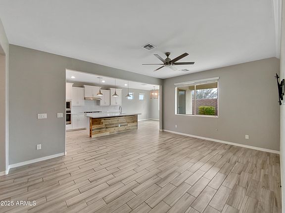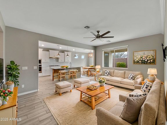 Seller may consider buyer concessions if made in an offer. Welcome to this property in boasting a neutral color paint scheme that enhances its warm ambiance in the award winning Eastmark community. The kitchen is a chef's dream with all stainless steel appliances, a walk-in pantry, and a kitchen island, all beautifully complemented by an accent backsplash. The primary bedroom is a sanctuary, complete with a walk-in closet and a private bathroom featuring double sinks. The covered patio is perfect for entertaining or simply relaxing, Outdoor enthusiasts will appreciate the fenced-in backyard. Come and discover this gem for yourself.