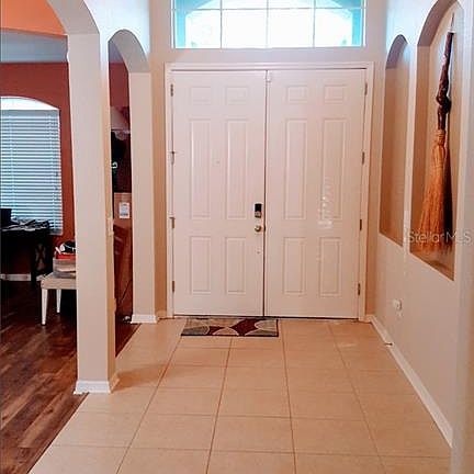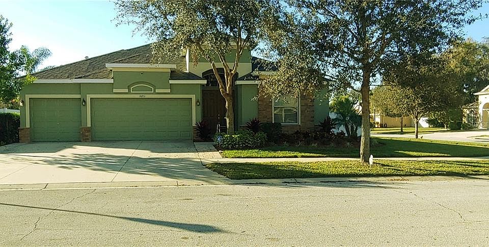 Welcome to beautiful community of Avelar Creek North! This stunning 4 bedroom, 3 bathroom, 3 car garage is move-in ready and features tons of upgrades with a brand new roof! Right when you walk in, you're going to the love the tall ceilings with architectural arches that lead to the huge living and dining room. The island kitchen is a chef's dream! Recently upgraded and refinished with new white cabinets, granite countertops, and stainless steel appliances. Custom wood and trim work with crown molding adds a beautiful touch along the kitchen wall. The open floor plan looks out to the spacious living room and glass sliders with tons of natural lighting. The master bedroom features designer ceilings and hardwood floors throughout. Step your way into the master bathroom for dual vanity sinks, and separate shower and bath tub. All 3 guest rooms are a very good size and have wood floors as well. No carpet!! The screened-in lanai and fenced backyard is the perfect place to entertain family and friends! New upgrades include a brand new refrigerator, potassium water softener filter system, cabinet refinishing, cabinet LED lighting with crown molding, alarm system, paves and stone work and new exterior paint. Centrally located and very close to shopping and dining, highway 301 and 75. Come see this stunning home today! Will not last!