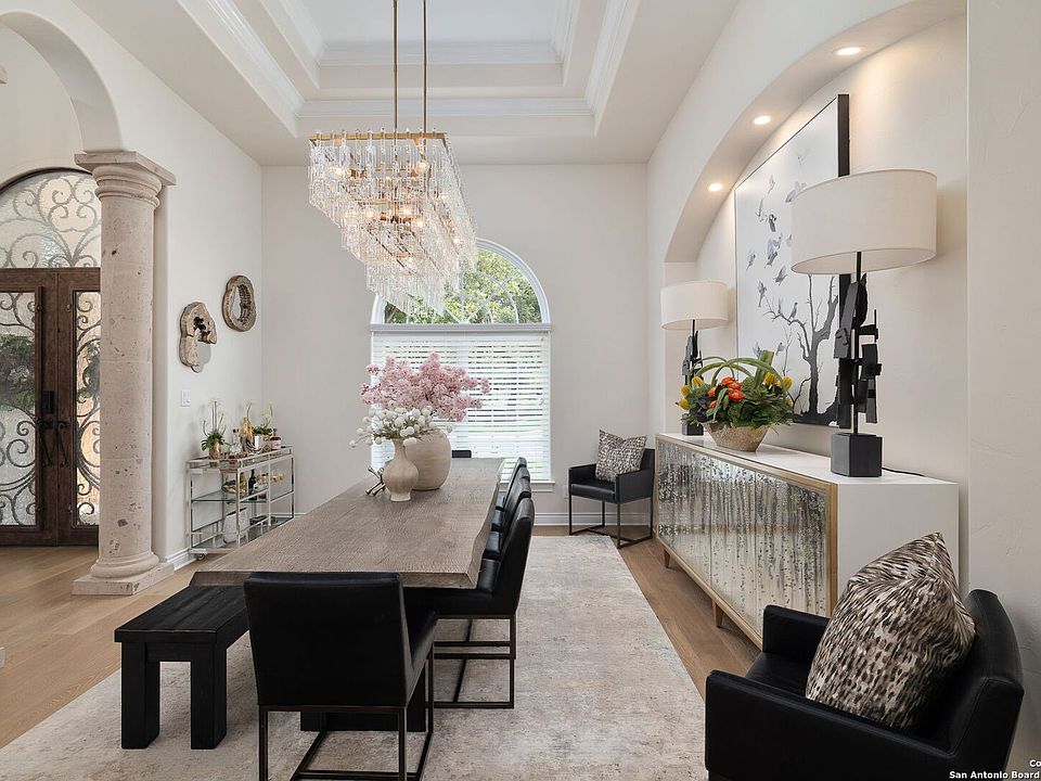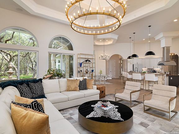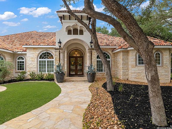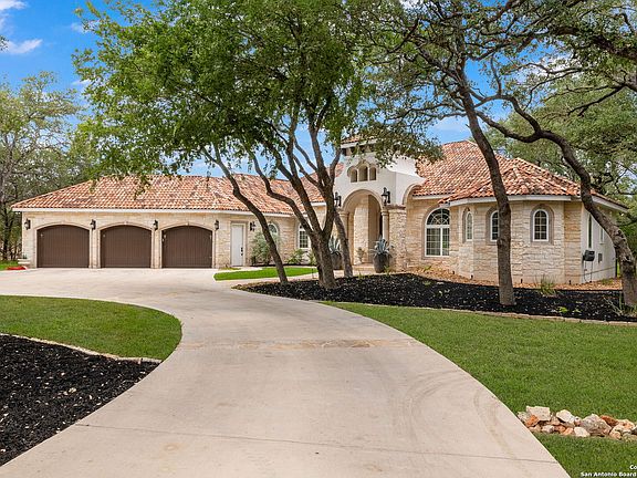 Nestled among mature trees on a spacious 1.24-acre lot, this beautifully maintained 3-bedroom, 3.5-bath home offers refined living with timeless Hill Country charm. A grand arched entry welcomes you inside, where elegant Cantera stone columns, soaring coffered ceilings, and brand-new white oak wood flooring set the tone for sophistication and comfort. The open floor plan is ideal for both everyday living and entertaining, with freshly painted interiors and abundant natural light. The thoughtfully updated landscaping and lush grounds stay pristine year-round. Additional highlights include a spacious 3-car garage, expansive living areas, and a seamless indoor-outdoor flow perfect for enjoying the tranquil, tree-studded surroundings. This exceptional property combines craftsmanship, privacy, and modern updates-all just minutes from local conveniences.