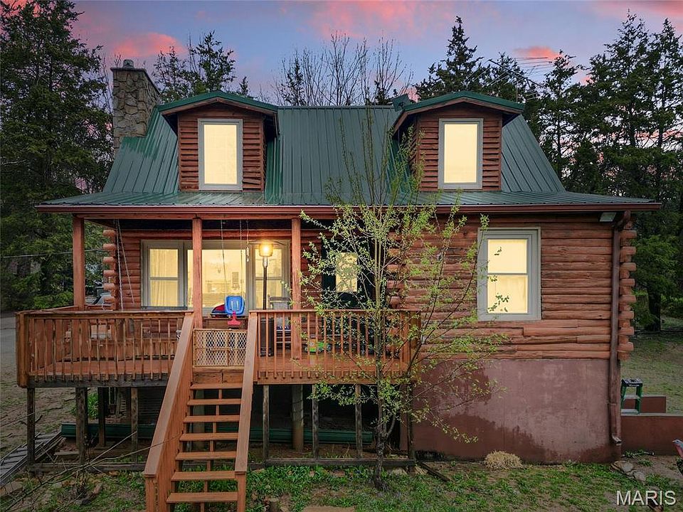 10212 Cardinal Country, a cozy log cabin tucked away on 6.41 acres of peaceful land, surrounded by beautiful mature trees. From the moment you arrive, you’ll be enchanted by the serene setting, where you can unwind and enjoy nature. The large, covered front deck is the perfect spot to sip your morning coffee or relax in the evening, taking in the lovely views of your private property. Step inside, and you’ll feel right at home in the warm, open living area with vaulted ceilings that allow sunlight to fill every corner. The inviting space features 2 bedrooms and 2 baths, offering a peaceful retreat for you and your loved ones. On chilly nights, gather around the stunning stone, wood-burning fireplace for the ultimate cozy experience. The 2nd bedroom is tucked away in the loft, offering a private nook with a charming view of the living room below. The w/o basement adds even more potential for personalization.