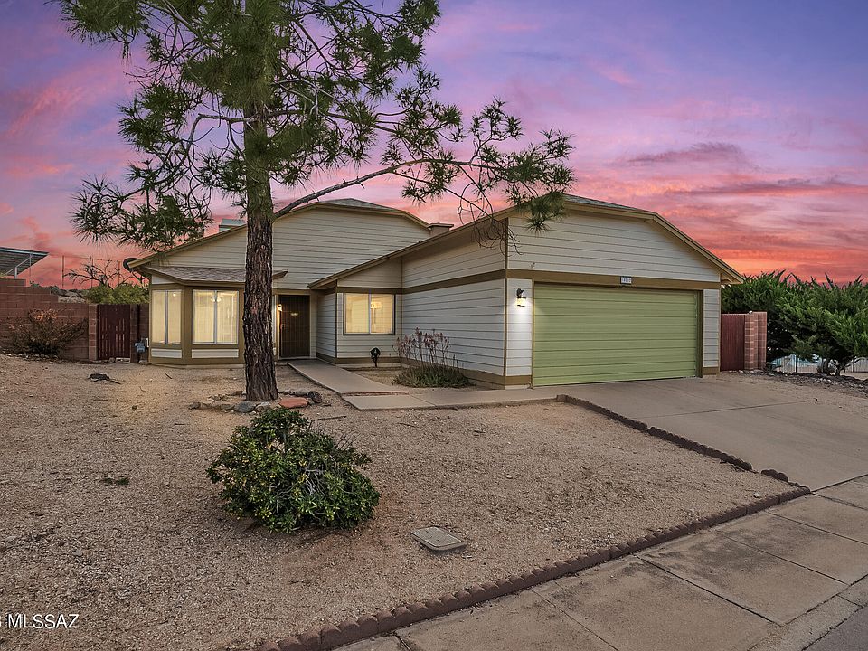 Affordable opportunity for 1,755 SqFt, 4bed/2 full bath modern contemporary with attached 396 Sqft garage, on massive .45 acre R1 lot in desirable Ridgeland Park neighborhood in East Tucson. E/W orientation, single story, no stairs/no steps, real hardboard siding (no vinyl), architectural shingle roof with metal eves, concrete sidewalks, concrete driveway, on and off street parking and low maintenance xeriscape landscaping. Inside buyers will appreciate soaring painted textured cathedral ceilings (no popcorn), tile flooring throughout (no carpet), recessed lighting, copper plumbing, energy efficient dual cooling option with gas Rheem HVAC and swamp cooler (located on side of house, not on the roof), digital Honeywell thermostat, wired for alarm, ceiling fans, internal laundry room plus storage, spacious living room with wood burning tiled slate fireplace & door out to covered patio. Large primary suite with double closets, ceiling fan and private ensuite full bathroom with walk in shower and dual sinks. Enjoy tranquil Tucson sunsets from extended covered back patio on concrete, low maintenance backyard, sewer clean out, gate for toys, surrounded by 6 ft concrete block privacy walls. Low $28.50 monthly HOA dues include community lap pool conveniently located next door, grassy park, play equipment and horseshoe pit. Walk to Secrist Middle School, minutes away from Northwest Medical Center, "The Loop", a 131-mile bike, hike, paved trail, groceries and restaurants. Close distance to Davis-Monthan Airforce Base, Raytheon, Target warehouse, Amazon and I-10 access. This property is ready for new owners to update to their tastes, call to make your appointment to view today!