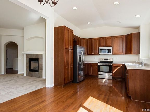 Welcome to this beautiful move-in ready ranch near Reunion! Freshly painted and cleaned with plenty of space for you and your family! Upon walking through the front door, the foyer features hardwood floors and leads into two separate "wings" of the property. Towards the back of the home there is a spacious living room with a gas fireplace & vault ceilings that leads into the open concept kitchen and dining area. The kitchen has gleaming hardwood floors, Corian counters, fresh paint, and tons of cabinets to store everything you need! The large dining area has a new sliding glass door leading out to the backyard. The large primary bedroom features a walk-in closet and en suite five-piece bath with views to the backyard! Walking down the other hall from the entry you will find an office with glass front french doors and two extra bedrooms, one of which lives like a second primary bedroom! Downstairs, the huge open finished basement is ready for your creativity! The large space would be perfect for a playroom, movie theater, or even a bar! There is also potential to add a 4th bedroom and full bathroom in the unfinished spaces as it is roughed-in and ready to go. The backyard is fully fenced with tall privacy fencing and could be great for entertaining. Come and tour today!