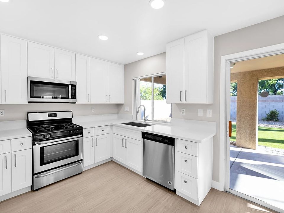 Fall in love with this gorgeous 3-bedroom + den home in the heart of Summerlin, beautifully upgraded from top to bottom! Featuring brand new shaker soft-close cabinets, sleek quartz countertops, and luxury laminate flooring, this home blends modern style with everyday comfort.