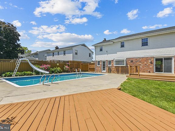 This 4 bedroom 2.5 bath home is so inviting. If you enjoy staycations you will love this back yard with an inground pool that has the capability of having being heated for cool evenings( gas line hook up there but capped off) or enjoy cooling off on a hot sunny day and relaxing on the patio. Entertaining delight. Then you go inside that has been freshly painted in decorator colors. Living areas include formal living room , family room, dining room and kitchen with breakfast area. When upstairs you will enjoy any of the four bedrooms, each large enough for a double bed or larger. The primary has a private bath with new walk in shower and two vanities. All have hardwood floors. Don't walk, run to this home before its gone