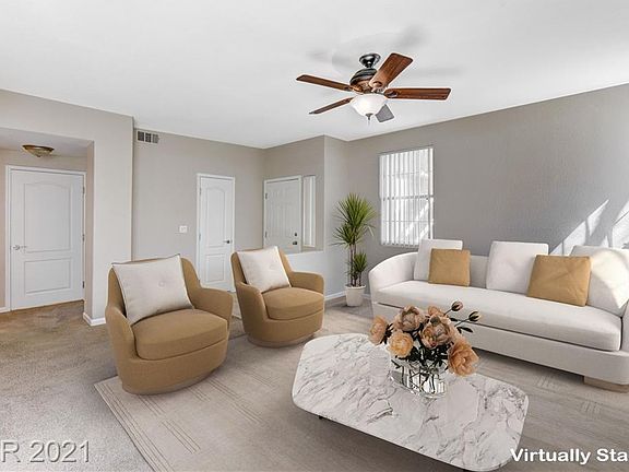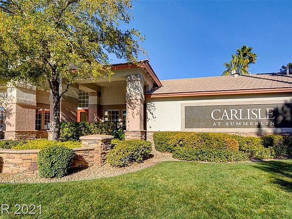 You will fall in love with this gorgeous Summerlin two bedroom condo in the gated Carlisle community. This unit is freshly painted and ready for a new owner, enjoy the granite counter tops and stainless steel appliances in the kitchen plus the washer and dryer in the separate laundry room. The primary bedroom looks out onto the beautiful grounds from your covered patio and has a large walk in closet. Take advantage of the great association features that include a pool and gym for residents! This one will sell fast so schedule your showing today!