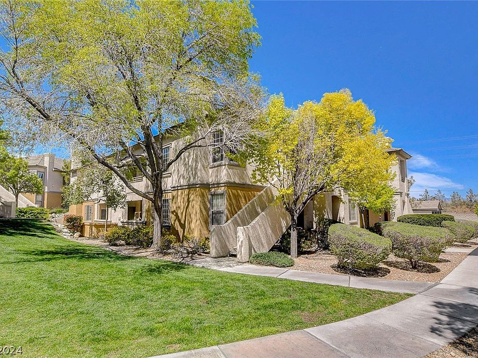 Own real estate in one of Las Vegas' wealthiest zip codes! Enjoy the parklike grounds (literally...look for bunnies and quail!) as you approach this condo with dual primary bedrooms, tons of natural light and windows overlooking a lush greenscape and towering trees. Located in a gated neighborhood w/ a park, incredible pool, and all the community amenities of Summerlin (basketball, baseball, soccer, tennis, community centers, splash pads and more). SID's are paid in full, all appliances are included, and it's one of the lowest price properties available. Don't miss out on this opportunity for upscale living at an unbeatable value!