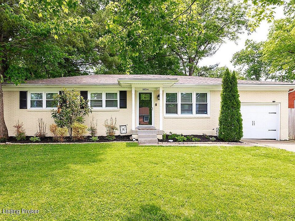 Absolutely Adorable Brick Ranch! Tucked away on a quiet street in established Blue Ridge Manor, this neighborhood is one of the last ''best kept secrets'' in town. Nestled between highly desired Plainview and Douglas Hills, you will come to love this central location, as well as the private park that offers residents additional greenspace, a playground, basketball courts and a new patio pavilion. This Move-In Ready home is well-appointed with 3 Beds, 2 Full Baths, over 2,000+ Total Finished sqft, a 1 Car Attached Garage, a Fully Fenced Backyard and a collection of tasteful finishes. Living is easy thanks to a long list of upgrades that were completed in 2016-2017, including: New Roof/Gutters, New HVAC, New Windows and Doors, New Water Heater, New Fixtures and a New Garage Door. A Covered Front Porch invites you inside to the main living room that is dressed down with Crown Molding, Wood Plank Flooring and an abundance of natural light. Shiplap accents oversee a dedicated dining area that seamlessly ushers you right into this Contemporary Kitchen. Sleek Cabinetry and Modern Granite Countertops run the full length of the kitchen that is accompanied by Stainless Steel Appliances. Adjacent is a marvelous Sunroom that overlooks the Rear Deck and Fully Fenced Yard with mature trees. Guaranteed to become one of your favorite rooms, this Sunroom can easily serve a multitude of wishes: Sitting Area, Formal Dining, Home Office or Play Room (you choose!). Down the hall you will discover a warm and welcoming Primary Bedroom that comes equipped with a complimentary Private Full Bathroom. Two additional bedrooms with a dedicated Full Bathroom round out the main living area. Downstairs was recently finished in 2021 with LVP Flooring, Recessed Lighting and Wood Cladding that provides for an enormous Media Room, plus a bonus Exercise Room (could be an office or "4th bedroom") and a dedicated Laundry Area. No need to worry...the basement was professionally waterproofed years ago prior to finishing the basement. Situated off Shelbyville Road, just minutes from a plethora of Middletown amenities with quick access to I-64. A true pleasure to show, come see for yourself!