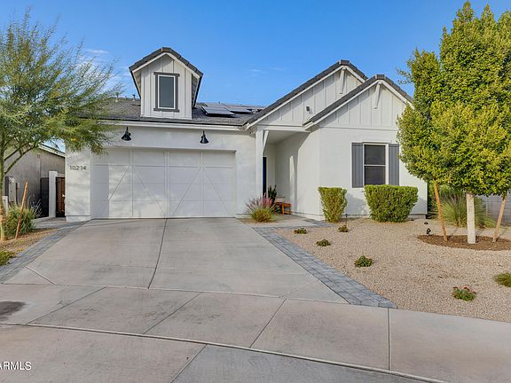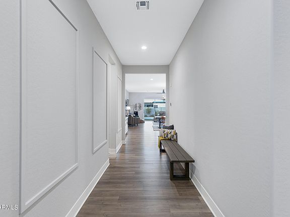 Charming 3 bed / 2.5 bath single level home w/ beautiful pool on corner lot built in 2021 in the amazing community of Cadence at Gateway. Why wait for a pool to be built when you can have one today??? Delightful curb appeal w/ paver bordered drive, upgraded garage door & perfectly placed desert landscaping w/ custom lighting. Great floorplan w/ updates throughout such as luxury plank vinyl (no carpet!) & top of the line lighting & fixtures. Stunning kitchen w/ SS KitchenAid appliances (including a 6 burner gas grill w/ hood), quartz counters, beautiful tile backsplash, pristine cabinets w/ crown molding, huge walk-in pantry & large island w/ sink, custom pendant lights & bar top seating. Kitchen opens to the dining room & window-lined living room w/ full wall of sliders to back patio. Primary bedroom offers private slider exit to back yard w/ custom window treatment allowing for both partial privacy & full privacy. Primary bathroom has dual sinks, large glass shower, private toilet & large walk-in closet w/ built-in shelving. Other 2 bedrooms both have large closets. Inside laundry w/ window, shelf & room for extra fridge/freezer if desired. 2 car garage has tons of overhead storage, as well as peg board wall to keep you organized. You will fall in love w/ the picture perfect backyard! Massive covered patio, sparkling pool w/ waterfall feature & in-floor cleaning system, open paver patio (the perfect place for a fire pit), synthetic turf, additional covered patio (outside of primary bedroom exit) & lots of healthy, blooming shrubs & plants along the perimeter, as well as the custom outdoor lighting. This resort style community offers something for everyone including pools (w/ splash pads & waterslides), parks, playgrounds, tennis courts, pickle ball, bocce courts, rec center, a garden area, indoor & outdoor fitness areas & much more. Main street parkway offers shopping, office & employment centers, as well as a trail system that seamlessly connects the walkable community. This is a must see home in Cadence at Gateway that has been meticulously maintained by the owners.