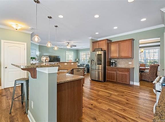 Welcome home! This spacious and immaculately maintained home in the desirable Ardrey Crest neighborhood features beautiful wood flooring and neutral paint all throughout main floor. Kitchen features granite countertops, stainless steel appliances, gas stove top, a Samsung smart screen refrigerator, and open concept. Huge master suite has its own private balcony overlooking the backyard. Perfect for morning coffee or afternoon relaxation. Master bath has dual vanities with separate tub and shower. Neighborhood boasts many amenities including pool, walking trails, fire pit and a bocce ball court! Absolute perfect location in the heart of Ballantyne! Don't miss your chance for this to be your next home!