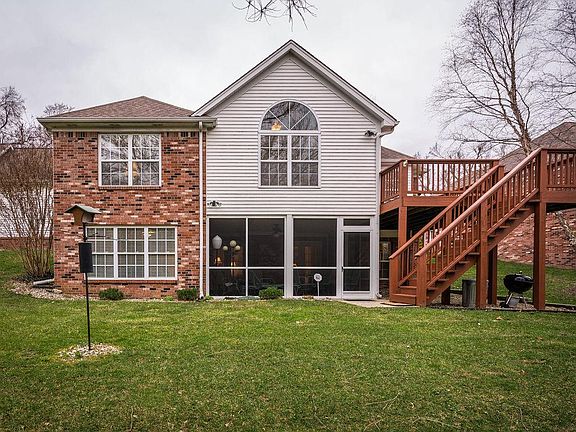 Click virtual tour button in photo option: Immaculate 3000+ square feet of living space backing up to private wooded area. Five bedrooms & 4 full baths. Hardwood foyer leads into open floor plan with vaulted ceilings, living and dining room area & views of sun room through arched doorways with 2 sided gas fireplace. Upgraded kitchen with custom honey maple glazed cabinetry, hardwood floors and bayed eating area. Front 1st floor bedroom could make great home office & is next to full bath for convenience. Master bedroom with sitting area and private bath complete with dual vanities, soaking tub, separate shower and walk in closet. 2nd floor private suite for guests with full bath. Lower level has 2 large bedrooms, full bath and great family room with built ins. Patio Doors lead outba to private screened porch, plus large grilling area off side of porch.This level would be perfect for in-law suite, or separate living area for other family members. The rear views are amazing with plenty of room for entertaining out back.Other features include upper deck off family room for sunning or grilling out. Convenient 1st floor laundry room.New roof, central vac, new driveway, extra insulation, irrigation system and the list goes on and on.View pictures and schedule your showing today
