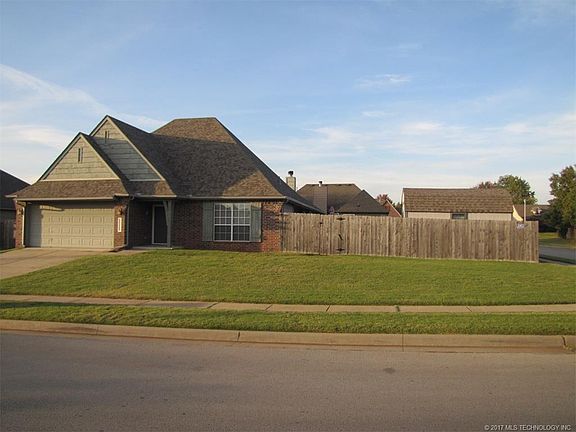 One story split bed plan with 3 bed/2 bath/2 Living;could be Office/Dining Room. Kitchen w/Lrg Ctr Island open to living. Large corner lot w/Gorgeous Gunite pool w/Waterfall feature! Brand new Roof&Guttering.Newer HVAC. Great neighborhood in Bixby Schools
