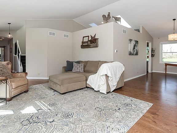 Seller has lovingly updated this home throughout the years and it shows from top to bottom! Located in beautiful Parkside Crossing where nature abounds you will find this lovely 1.5 story with main level master suite. Inside, the charm of this home is both contemporary and farmhouse all wrapped in one. The all white kitchen features a custom solid wood island with seating and six deep drawers for nice storage, beautiful quartz counters, Blanco sink, unique tiled white backsplash, open cabinet shelving, stainless appliances and funky farmhouse light fixtures over the island. The kitchen opens to the "should be" family room but the seller has chose to use it as the dining room making this a large farm-style kitchen. The living room is the family room and the formal dining room serves as a home office. Mrs. Seller didn't see the point of not using every inch of the home as every day living space. A first floor master features a newly updated master bathroom with an antique farm table vanity with double bowl Kraus sinks and Kraus chrome faucets, ship-lap walls, over-sized glass shower with bench, open linen shelving and wide plank wood-look ceramic flooring...truly a bathroom Joanna Gaines could have designed! Upstairs, 3 additional bedrooms all with cathedral ceilings, and an updated hall bath are perfect for everyone. The staircase is dramatic and is flooded in natural light from three large picture windows. About the windows, they are new! The siding and roof are new too! BRAND NEW entry way door with hammered decorative glass door panes and side-lights! New furnace, A/C and water heater just this past year! New asphalt driveway! The well pump has even been replaced! The basement features a recreation room and separate storage room with brand new, 100% water proof, luxury vinyl plank flooring! The only items the seller has yet to update are the back deck and the storage shed out back. The lot is just shy of one acre. Deer come to the bird feeder in the back yard several times a day for a snack...and when we say deer we mean 3,4,5 sometimes as many as 15! There are no neighbors across the street or behind so your views are of nature only. Have a commute? I90 is 5 minutes away! Downtown Huntley, Walmart, Starbucks, and restaurants etc...are merely minutes. Randall Road shopping is 25 minutes. You're out in the country yet close to all the conveniences. Seller really loves this house and hopes the new owner will too!