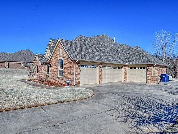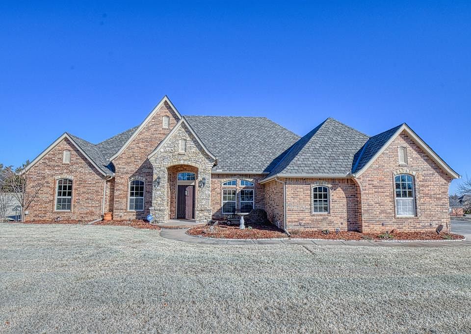 Beautiful SWM & Sons custom built home in terrific neighborhood with no thru street. Within 2 miles of Tinker, Carl Albert schools, highways, hospital, shopping, dining, etc. Enjoy walking into a spacious living room with gorgeous bamboo floors, a gas log FP & custom built ins. Great view for nature watching from living, dining or back porch. Kitchen has SS appliances (fridge, dishwasher, microwave & 5 burner gas stove with broiler oven). Also has an abundant amount of counter tops & cabinets. Plenty of storage with 2 pantries (1 in laundry room) & an island. Office/Study with built ins. Fresh paint & carpet in several rooms. Primary bedroom with great bathroom & walk in closet. Primary bathroom has double sinks, private toilet, whirlpool tub, walk in shower & to top it off, a heated towel rack! Primary closet has seasonal racks (3 levels) & room to put dresser & chest of drawers. Large secondary bedrooms. 5th bedroom/flex room could be utilized for many things, i.e., play, exercise, hobby, 2nd office, 3rd living etc. Upstairs 2nd living room has full bath & closet. Upstairs has walk in attic with ample planked flooring for additional storage. Both garages have attic stairs as well. Foam insulation in exterior walls. Extra insulation in attic along with Solarboard lining on underside of roof. Hurricane clips on roof. New class 4 high impact shingles installed 2022. Storm shelter in garage floor. 4 car garages all with access from inside. All grass area has RainBird sprinkler system. Generac generator installed 2019. Monitored & paid for thru 7/24. Own ADT security system. Buyer just needs to pay for monitoring. Back patio is a peaceful place to enjoy life. Amazing covered patio area & extended concrete for even more space. Back of house is pre-wired for a pool. Back 1/2 acre is wooded for a glimpse of nature daily. Soffits have outlets for easy holiday light install. - *Assumption available for VA Buyers only. Fixed interest rate 2.25% Ask Realtor for details.*