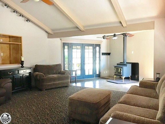 Pretty as a Picture! This tidy rancher is "move-in ready". Tastefully up-dated inside and out. The living room design has a vaulted ceiling and double doors that open onto the patio. Office-bonus room to the right. A step saver kitchen features new appliances and a pantry. The adjacent dining area has a door going to the side yard. Wood burning stove in the living room and gas stove in the dining room keep it comfy inside during cool weather and evaporative cooling makes hot summer days a breeze. Master bedroom has access to covered patio with two guest bedrooms nearby. Inside laundry room. The garage has a work space to the side and will appeal to the auto enthusiast, hobbyist or ? This large back yard and super sized covered patio are ideal for outdoor entertaining year round.