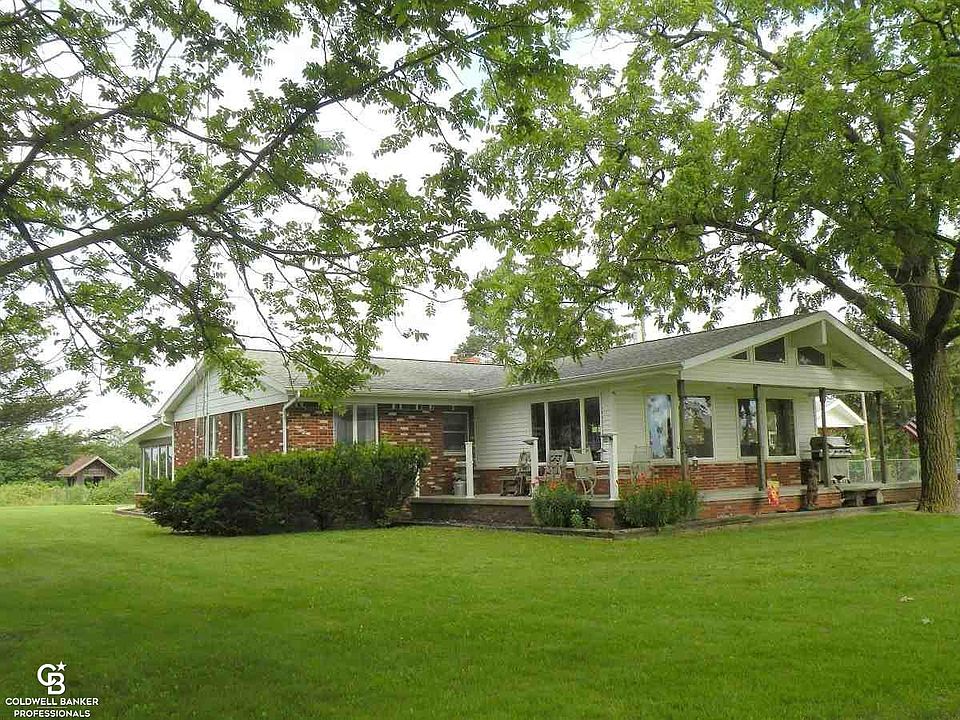 Enjoy the up north feel of this home - tree lined drive - knotty pine great room with vaulted ceiling - lots of hardwood floors, crown moldings - open, spacious design - natural fireplace - master suite - master bath with ceramic tile and jet tub - first floor laundry with tub - casement windows - geothermal heat , very low utility bills - 41+ acres with approx. 21 acres of woods for great hunting with trails & deer blinds - the family has had great success hunting on the property - 4 outbuildings - pole barn 32' x 40 ', 4 doors with 3 openers, motor home will fit - cement barn 30' x80' , 220 electric , wood stove - barn 55' x 30' - barn 28' x 16' - pond - subject to 2017 crop rights - security system