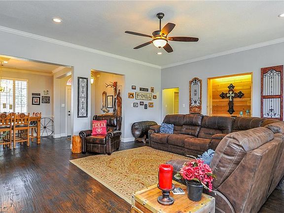 Have your mini ranch close to the city without city taxes! In unincorporated Tarrant County and sought after Northwest ISD! Gated equestrian neighborhood with community lighted arena, pavilion, round pen, riding trails, baseball and soccer fields. The house has a great layout! Three bedrooms split from the master suite! Second living area has a closet and it's own half bath. In the last two years the house has been updated with ceramic floors in the bathrooms, slate floor in the laundry, real hardwoods in the rest of the home, granite throughout, new kitchen appliances, 2 new HVAC units, 3stall barn w tack room, Invisifence for dogs around entire property and new roof. On well and septic so utilities are low!