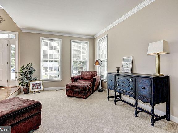 Stunning home nestled on a cul-de-sac in community of Emerson with an easy commute to NSA, Ft. Meade, DC, Baltimore, and the MARC Train. Kitchen boasts 42-inch cabinetry, corian counters, tile backsplash, and center island with breakfast bar. Formal living room and dining room with crown molding and bump-out window. Family room features a gas fireplace and plantation shutters. Sunroom showcases transom and Palladian windows. Main level den/study with French doors. Master bedroom highlights a cathedral ceiling, den/study, and two walk-in closets. En-suite master bath offers dual vanities, soaking tub, separate shower, and a water closet. Three additional generously sized bedrooms and a full bath with dual sink vanity complete the upper level sleeping quarters. The lower level offers a media room with built-in surround sound, projector, screen, and theater curtains, an exercise room, full bath, walkout access to stone patio, and ample storage. Enjoy the composite deck, stone patio, and privacy offered by backing to conservation land. Property Updates: Interior painting, carpeting, tile flooring in upper level baths, light fixtures, garage doors (right garage door has WIFI enabled motor). Amenity rich community offers a clubhouse, outdoor pool, tennis courts, walking paths, playgrounds and more!
