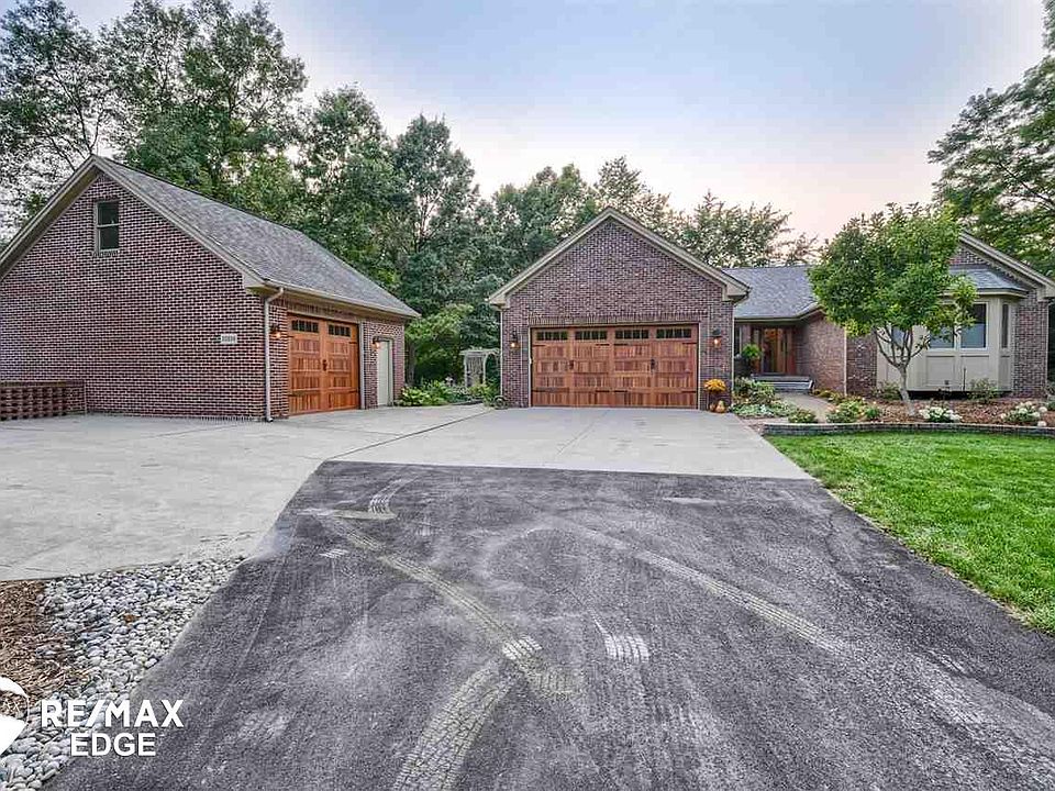 The 3 acre private oasis setting says it all with this updated, custom built all brick 4 bedroom 3.5 bathroom ranch with a finished lower level walkout. The beautifully landscaped property features a 20 foot deep aerated pond with a slide and diving board, patio with a natural gas fireplace, large fenced in garden, 30x34 storage shelter, an extra detached 1 car garage with a bonus room upstairs, and a feeder stream that runs through the property with trails and a bridge. The interior is immaculate with hardwood floors throughout, remodeled kitchen, with granite counter tops and tons of cabinet storage, a large master suite, first floor laundry, and a stone Fireplace Xtrodinair that guarantee's no more than a 5 degree temperature difference through the house. The lower level walkout is finished with a 4th bedroom, full bathroom, game room, sewing room, and a huge mechanical room for lots of storage. Sit on the back deck and listen to the feeder stream run through the property!