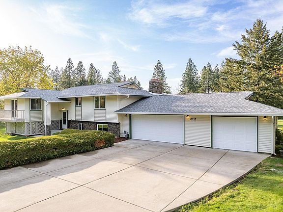 Welcome to your dream home in the highly sought-after Ponderosa neighborhood in Spokane Valley! This fantastic, remodeled home sits on a rare 1-acre corner lot, offering plenty of room for outdoor activities, gardening, and the potential to build a shop. You will love the brand new floors throughout the main floor! The kitchen features beautiful quartz countertops, a large pantry, and brand new appliances. The centerpiece of the living room is the beautiful fireplace that not only adds a cozy touch but also includes a brand-new TV, making it the perfect spot to relax and unwind after a long day. The large, covered deck off the living room provides stunning views of the fenced and sprinklered backyard, making it an ideal spot for entertaining guests. The spacious primary suite features double closets, 3/4 bath, and a private balcony. The large lower-level family room with a second fireplace is perfect for movie nights! Located just minute to schools, stores, restaurants & Iler Creek,