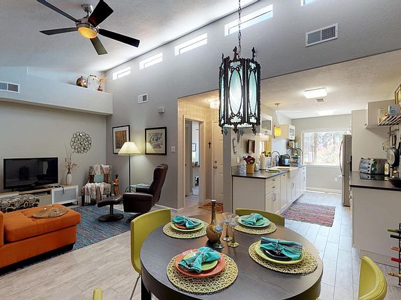 Available October to February, Chic Modern Ikea Furnished rental for the winter months. October 1, 2019 to February 28, 2020. Master bedroom has a queen size bed with attached bathroom, walk-in tiled shower with 2 heads. 2nd bedroom is set up as a office, but does have a full size Ikea futon for additional company. Office is fully functional with a printer & shredder. Full laundry facilities on site, enclosed sun room off the master with beautiful light and sky lights. TV has local network channel and Movie Streaming via Roku. Beautiful Sandia Mountain Views from private backyard patio. Would consider monthly rental at $1800.00 a month. Fully Furnished October - February 2020 Owner pays all utilities including High Speed Internet