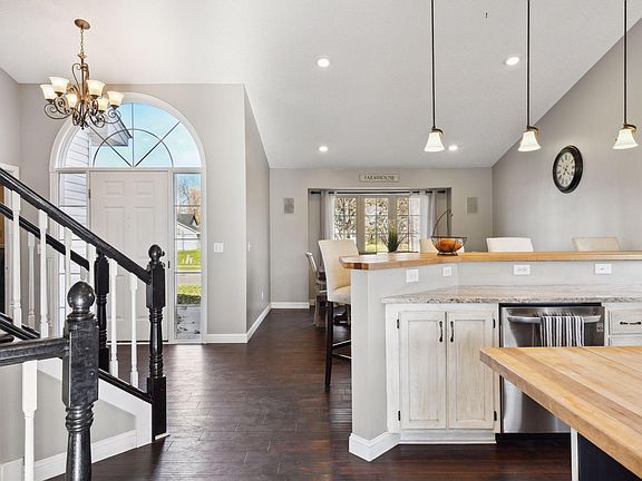Stunning 4-level home with recent updates and pond views! This immaculate home offers a spacious open layout and a recently remodeled main level living room, bathroom and kitchen. The upper level features several large bedrooms, including the master suite which features large windows, a walk-in closet and an attached master bath. The lower level offers a fully finished living area, additional bedrooms, and easy walk-out access to the large backyard, which features a great patio with a new wrap around deck, a built-in hot tub and beautiful pond views! Additional highlights include: dark wood flooring, vaulted ceilings, fresh paint, high-end appliances, a mudroom with built in storage, a main-level laundry room, a new extended driveway with parking pad and a new roof. Located in an excellent neighborhood, close to parks, Cedar Creek Golf Course, local bars/restaurants and shopping, with easy access to HWY 94. Don’t miss out – come see this gorgeous property today!