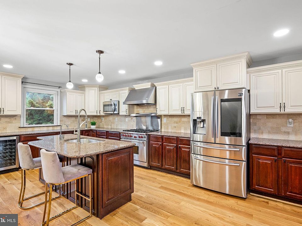 Prepare to be captivated by this exceptional residence in the sought-after Morrell Park neighborhood of Northeast Philadelphia. With an open concept design and exquisite details throughout, this home is a masterpiece of modern living. As you step inside, be greeted by beautiful hardwood flooring that flows throughout the living spaces. Elegance is further elevated by the woodwork and moldings, while upgraded and tasteful light fixtures create a warm and inviting ambiance. The kitchen, a chef's dream, boasts top-of-the-line appliances, gorgeous granite counters, and plenty of custom cabinets for all your storage needs. The focal point is a spacious island with a center sink, perfect for culinary creations and casual dining. Additional features such as a built-in wine fridge, custom tile back splash, and a generously sized dining area complete this culinary haven. The kitchen opens up to a sunny deck, offering an ideal space for outdoor gatherings. Follow the stairs down to discover an extra-large rear fenced yard, providing both privacy and versatility. A new roof was installed in 2020. The fully finished basement is a multifunctional space, offering a full bathroom, a separate and spacious laundry area, a kitchenette, and additional storage space. The current owners have utilized this space as an in-law suite. With a private front entrance and direct access to the rear yard, this level adds convenience and flexibility to the home. An additional patio area in the rear yard further enhances the outdoor experience. Upstairs, the hardwood flooring continues, adorning three bedrooms with ample closet space. A modern and renovated full bathroom completes the harmonious design of this home. More than just a home, this property is a sanctuary of style and comfort. Don't miss the opportunity to call this remarkable residence your own. Schedule a showing today and experience living in the heart of Morrell Park!