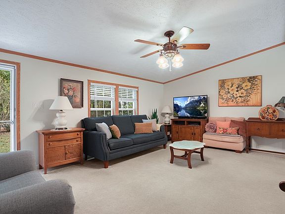 A true sanctuary nestled on a serene, 3-acre partially wooded lot! Inside find a spacious living room & bright, airy dining area and office/bonus room. The kitchen boasts an abundance of cabinetry, breakfast bar & a cozy breakfast nook. The primary bedroom suite is private & features a luxurious soaking tub & separate shower. Two additional bedrooms & full bath provide ample space. A dedicated laundry room adds to the home's functionality. Outside, the wrap-around deck & patio w/ outdoor lighting is perfect for relaxing or entertaining. A 2-car carport w/ electricity completes this beautiful property. Don't miss the chance to experience the serene lifestyle this home offers! This property has been beautifully maintained and loved.