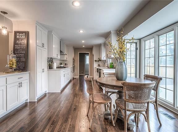 - Pantry, Partial Carpeting, Kitchen Island, Custom Cabinets, Painted Cabinets