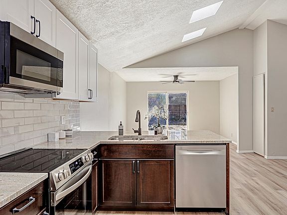 This stunning, fully updated home in the heart of Albuquerque's sought-after Northeast Heights is ready for you! The spacious, open-concept layout seamlessly blends the living, dining, and kitchen areas, perfect for entertaining. The kitchen boasts brand-new stainless steel appliances, sleek granite countertops, and a striking backsplash. The cozy fireplace provides the perfect ambiance for relaxing nights. Enjoy peace of mind with a new shingle roof and water heater. The primary bedroom is a nice size to unwind after a long day, with a door leading to a private patio. The backyard is ideal for all your gatherings and outdoor relaxation. Located close to shopping centers, restaurants, and parks, this home combines comfort and convenience in an unbeatable location. A must see gem!