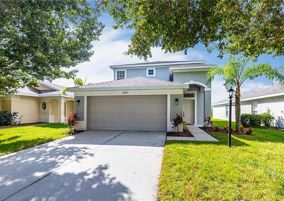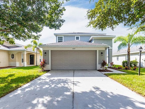 MOVE-IN READY LAKE VIEW 4 bedroom, 2.5 bath, 2 car garage lake front home in Aberdeen community. NEW HVAC. As you walk into this home, you will notice the new flooring throughout, fresh paint and lots of living space. Formal living room and dining room provide extra space for entertaining with half bath downstairs for guests. Kitchen is open to the living area with sliding doors to the back yard to enjoy the peaceful and private lake view. Brand new stainless steel appliances in kitchen with eat-in kitchen space and breakfast bar and huge pantry! Laundry room off kitchen for added convenience. All bedrooms are spacious and upstairs with brand new carpet. Master bedroom has his and her walk-in closet with en suite featuring garden soaking tub, separate shower, and dual sinks. Extra hall bathroom upstairs. Huge yard has plenty of room for a pool overlooking the peaceful lake! Aberdeen community has playground, walking trails, close to schools, Ellenton Premier Outlets, I75, Lakewood Ranch restaurants, shopping and more!